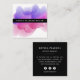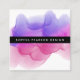 Les cartes de visite d'aquarelle chic dans un format carré unique présentent votre nom ou nom d'entreprise en blanc sur le noir, superposé sur une illustration de l'encre blooming dans des tons lumineux et colorés de rose fuchsia, magenta et violet. Ajoutez vos coordonnées complètes au dos en lettres blanches modernes. Comprend trois icônes de médias sociaux et un champ de modèle pour votre nom d'utilisateur.