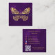 Carte De Visite Carré Butterfly violet or QR code élégant script