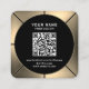 Style d'identification métallique encadré en or arrondi avec espace pour logo et code QR. Représentation d'un service moderne de haute qualité dans la photographie, le tournage de drones, la vidéographie, l'édition vidéo, la conception graphique, le négoce de crypto, la réparation d'ordinateur et de téléphone et bien plus encore.