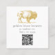 Le carte de visite carré moderne présente une illustration de buffle vintage or / bison sur un arrière - plan brun foncé avec du texte contemporain sur le devant, et un code QR personnalisable pour votre site Web ou les médias sociaux sur le dos.