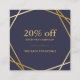 Modèle carré de carte de bon de remise d'or de médias sociaux bleus de minuit géométriques à la mode minimalistes chics modernes de motif il est facile customiser ! Editable et personnalisable ! Perfectionnez pour beaucoup de professions créatives visuelles de bord semblant idéales pour l'organisateur, le wedding planner, le conseiller, les stylistes, les concepteurs, les maquilleurs, le salon et les professionnels créatifs. En outre approprié à d'autres concepteurs de professions, le décorateur intérieur, estimateur de coût, chef de projet, consultant en relations publiques, ergothérapiste de conseiller d'école, dentiste, pharmacien, psychologues, psychiatre, comptable, imposent le professionnel, le conseiller financier, le vrai agent immobilier, la mandataire, l'avocat, l'avocat-conseil, le paralégal, le propriétaire de magasin de vêtements, le professionnel du droit, le logiciel/développeur web, le programmeur, le chiroprakteur, l'analyste fonctionnel, l'administrateur de base de données, le décapant, le vétérinaire, l'interprète et le traducteur, le représentant de commerce, l'assistant social et beaucoup d'autres professionnels. (Aluminium d'or PAS, une image)