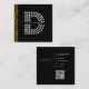 Carte De Visite Carré Chic Black Gold Diamond Initial D Monogramme QR Co