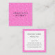 Ce carte de visite carré chic, girly et glam a votre nom complet et une parties scintillant rose chaud scintille l'arrière - plan des deux côtés, et votre nom, titre et coordonnées sur le dos. Personnalisez facilement ce carte de visite en ajoutant votre nom complet, votre titre de poste et vos coordonnées. Cliquez sur "customiser plus loin" pour modifier la couleur du texte et le style et la taille de la police. Cette carte de visite chic conviendra parfaitement à un maquilleur, un coiffeur, un consultant en beauté ou un propriétaire de salon.