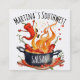 Fun chile or chili pepper jumping into a steaming, flaming cooking pot on this business card for Mexican or Southwestern food, salsas, sauces or cuisine personal chef, caterer or catering business, cooking classes and more.
