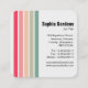 Modèle de carte de visite avec un motif de bande horizontale de cinq couleurs à l'avant avec les mêmes bandes qui tournent verticalement à l'arrière et alignées à gauche. Nom sur le devant en lettres à double interligne. Le nom est également repris au verso avec le titre/le poste de travail et les coordonnées ci-dessous. Ce modèle de carte a été conçu principalement pour un individu ou freelancer il peut bien sûr être customisé plus loin et peut facilement être adapté pour d'autres utilisations.