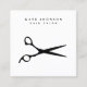Un design minimaliste de ciseaux coiffés styliste présentant votre propre logo d'entreprise, code QR, poignée de médias sociaux et texte. Cette élégante carte de visite est idéale pour tous types de coiffeurs, barbiers, coiffeurs, etc. Une façon simple et professionnelle de promouvoir votre entreprise. Personnalisez vos détails pour créer votre propre carte de visite unique.