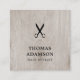 Modèle de carte de visite personnalisable minimaliste avec fond en bois et ciseaux noirs. Design élégant moderne, parfait pour les coiffeurs, les coiffeuses, les barbiers