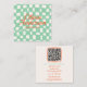Carte De Visite Carré Code QR Retro main verte tirée À damiers Super