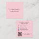 Un arrière - plan rose pâle. Retour : Modèles pour votre nom, titre, numéro de téléphone, adresse postale et de site Web, QR-code à votre site Web. icônes Facebook et Instagram.