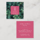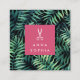 Un élégant coiffeur ou un carte de visite de salon à l'ambiance chic tropicale de l'île, est l'arrière - plan de feuilles botaniques animés de la jungle verte. Personnalisez l'avant avec votre nom ou nom d'entreprise sous une paire de ciseaux styliste, et ajoutez vos coordonnées complètes à l'arrière en lettres blanches modernes sur un arrière - plan rose moyen.