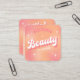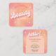 Cartes de visite cosmétologue tendance avec pêche girly et dégradé rose arrière - plan et rétro polices de style super qui lisent 'Beauté' et 'Bonjour'. Ces cartes de visite de beauté élégants comprennent de l'espace pour votre nom, tag line, des informations sur les médias sociaux et les coordonnées, une façon simple de faire des cartes de contact personnalisées pour votre salon de beauté, lashes affaires, spa, studio de maquillage et plus encore!