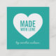 Carte de visite moderne minimaliste avec le mot "Fabriqué avec amour" en caractères gras contre un coeur blanc et un script élégant pour votre nom ou nom de magasin. Ce carte de visite polyvalent dispose d'une couleur arrière - plan modifiable (changez-la à votre convenance) et changez la couleur de police pour qu'elle corresponde à celle à laquelle vous pouvez accéder en cliquant sur le bouton "personnaliser". Cette carte fonctionne aussi bien qu'une étiquette cadeau, une étiquette de faveur ou une étiquette de produit. Il est facile de personnaliser ; vous pouvez facilement remplacer le texte de l'espace réservé pour ajouter vos propres informations. Pour plus d'options comme changer la police et sa taille, cliquez sur le bouton "Personnaliser". *Veuillez noter que le filigrane Zazzle qui apparaît dans l'aperçu du zoom n'apparaîtra PAS sur le produit imprimé final © Rosewood et Citrus