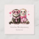 Cartes de visite avec une jolie illustration. Une paire de loutres en vêtements rose. Portant des chemises rayées, l'une portant une cravate et l'autre portant un arc. Entouré de coeurs d'amour.