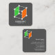 Carte De Visite Carré Cube isine istro - Blanc, Vert et Orange sur Gris