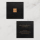 Carte De Visite Carré Cuir noir élégant de luxe monogramme cuivre doré