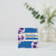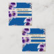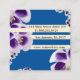 Carte de visite élégante et design. Bandes blanches, arrière - plan bleu et motif photo fleuri. Personnalisable .