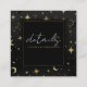 Carte De Visite Carré Détails de mariage Lune Étoiles Célestes Noir & Or