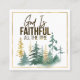 Carte de visite de citation inspirante représente un design d'aquarelle nature simple comprenant une forêt de pins verts et d'or. Il comporte une citation chrétienne encourageante, "Dieu est fidèle tout le temps."