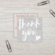 Moderne minimaliste blanc, doux pastel rose pâle et argent parties scintillant ordre d'affaires Merci brosse police de script avec un coeur. Ajoutez vos médias sociaux. Avec une police de script de signature élégante, toutes les couleurs sont modifiables, ajoutez votre logo.