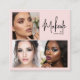 Carte De Visite Carré Elegant Blush Pink Black Script 3 Photo Makeup