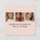 Carte De Visite Carré Elegant Blush Pink Script 3 Photo Hair Makeup