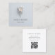 Carte De Visite Carré Elegant Minimalist Floral White Blue QR Code