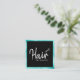Carte De Visite Carré Elégante coiffeuse à ciseaux bleu et noir
