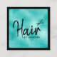 Ce design carte de visite de coiffure moderne comprend des ciseaux, arrière - plan de texture métallique bleu imitation menthe et police calligraphie élégante.