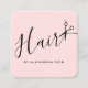 Carte De Visite Carré Elégante coiffeuse aux ciseaux rose et noir pastel