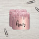 Ce superbe design carte de visite de coiffure styliste présente une texture métallique de parties scintillant à goutte d'or faux rose et cuivre rose et élégante police calligraphie.
