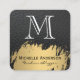 Carte De Visite Carré Faux Or Brossé Monogramme Cuir