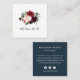 Les cartes de visite floraux chics au format carré unique présentent votre nom ou nom d'entreprise en écriture manuscrite avec une pochette de fleurs d'aquarelle en marsala bordeaux, rose rousse et bleu marine, avec feuillage vert d'eucalyptus. Ajoutez vos coordonnées complètes à l'arrière en blanc sur bleu marine riche, y compris trois icônes de médias sociaux et un champ pour votre nom d'utilisateur. Un choix unique et élégant pour fleuristes, évènements, wedding planners ou toute occupation.