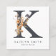 Carte De Visite Carré Fleur sauvage Boho Initial K QR Code