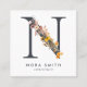 Carte De Visite Carré Fleur sauvage Boho Initial N QR Code