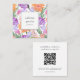 Carte De Visite Carré Fleurs brillantes | Code QR bleu violet orange