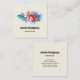 Carte De Visite Carré Fleurs tropicales exotiques en rose et turquoise
