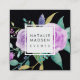 D'élégants cartes de visite fleuris, de forme carré unique, sur du papier noir riche, sont ornés d'un bouquet de fleurs violettes violet violet peintes en aquarelle. Personnalisez le côté avant avec votre nom et le nom ou le titre de votre société, et ajoutez vos coordonnées complètes à l'envers. Parfait pour les wedding planners, les planificateurs d'événements, les professionnels de l'occasion spéciale ou toute profession.