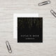 Le design élégant et simple dans un format carré unique présente du lettrage blanc classique sur un arrière - plan noir riche avec des fils verticaux de fil d'or faux lumières en cascade du haut. Personnalisez le devant avec votre nom et votre nom commercial ou profession, et ajoutez vos coordonnées complètes à l'envers. Un beau choix pour n'importe quelle occupation, exemple montré pour les esthéticiens.