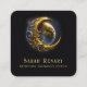 Un beau croissant doré entoure une pleine lune céleste. Au dos de la lune lunaire se développe dans une texture dorée. Parfait pour les médiums psychiques, professeur de yoga, entraîneur spirituel, ouvrier de cristal, guérisseurs d'énergie et bien plus encore. Customisez avec vos coordonnées et informations commerciales.