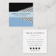 Elégante, élégante et raffinée, carte de visite avec motif en zigzag (chevron) en gris et blanc avec des touches de couleur bleue et noire. Design moderne et tendance, parfait pour les amateurs de zigzag.