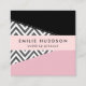 Elégant, élégant et sophistiqué, carte de visite avec motif en zigzag (chevron) en gris et blanc avec des touches de couleur rose et noire. Design moderne et tendance, parfait pour les amateurs de zigzag.