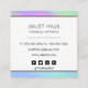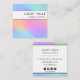 Un carte de visite carré branché au design holographique arc-en-ciel. Vos coordonnées, y compris le téléphone, le courriel, le site Web et la poignée des médias sociaux sont à l'envers. Vous pouvez customiser plus loin pour supprimer les icônes des médias sociaux que vous n'utilisez pas, et repositionner les icônes si nécessaire.