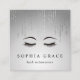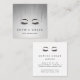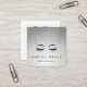 Design élégant et simple dans un format carré unique, présente du lettrage noir classique sur un arrière - plan gris sombre orné de fils de fils de fausse feuille d'argent. Personnalisez le devant avec votre nom et votre nom commercial ou votre profession sous une paire de cils et sourcils luxuriants, et ajoutez vos coordonnées complètes, y compris les heures, le cas échéant, sur le côté opposé. Un beau choix pour les maquilleurs, les techniciens de sourcils, les experts de l'extension de foudre, les esthéticiens ou tout professionnel de l'industrie de la beauté.