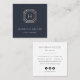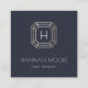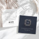 Faites la promotion de votre entreprise de design de bijoux avec ces élégants cartes de visite carrés en bleu marine riche avec des accents dorés. Le design présente une illustration de pierres précieuses à facettes art déco en faux feuille d'or, avec un monogramme initial unique à l'intérieur et deux lignes de texte personnalisé en dessous. Ajoutez les coordonnées de votre joaillier à l'envers, ainsi que votre nom d'utilisateur des médias sociaux. Pour afficher d'autres options d'icônes de médias sociaux, ouvrez l'outil de conception.