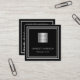Carte De Visite Carré Logo élégant en argent noir code QR