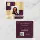 Bourgogne, vin rouge et faux or arrière - plan bloc couleur. Personnalisez et ajoutez le logo, la photo et le texte de votre entreprise sur le devant. Retour : arrière - plan bleu marine. Modèles pour Votre nom, titre, numéro de téléphone, adresse postale et de site, votre propre code QR à votre site Web ou compte de médias sociaux.