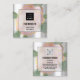 Carte De Visite Carré Logo personnalisé QR CODE Feuilles Roses en argent
