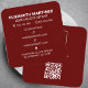 Voici notre Carte de visite de Carré professionnel QR Code Front et Back Business Logo - une solution élégante et moderne pour faire une impression durable dans le monde des affaires. Éloignez-vous de la foule avec ce carte de visite unique qui intègre en toute transparence un code QR, apportant une touche moderne à votre identité professionnelle. Conçu pour le professionnel contemporain, ce carte de visite carré présente un arrière - plan rouge foncé pour un look audacieux et distinctif. L'inclusion d'un code QR permet une connectivité numérique transparente, permettant aux clients et aux contacts d'accéder rapidement à vos informations ou à votre site Web avec une simple numérisation. Avec le logo de votre entreprise et les coordonnées essentielles à l'avant et à l'arrière, ce carte de visite est non seulement saisissant visuellement mais aussi très fonctionnel. Le design moderne et minimaliste apporte une touche de sophistication, ce qui en fait une représentation mémorable et unique de votre marque. Mettez à niveau votre jeu de réseautage avec notre Carte de visite de Carré professionnel QR Code Front et Back Business Logo - où l'innovation rencontre le professionnalisme.
