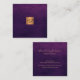 Carte De Visite Carré Luxe élégant cuir violet en cuivre or monogramme