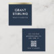 Carte De Visite Carré Minimal Elegant Navy Blue QR Code Professional